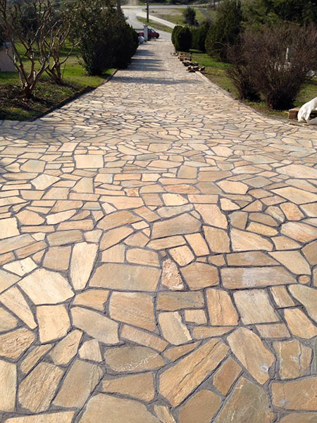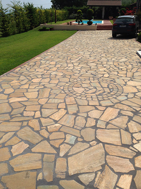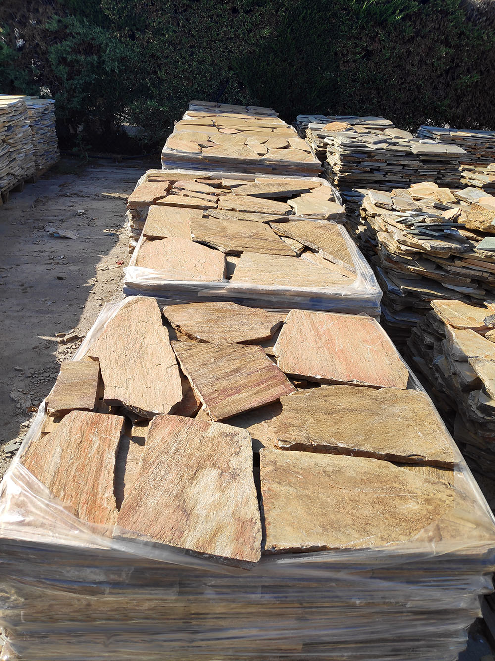Ακανόνιστη πέτρα με εναρμόνιση χρωμάτων καφέ και πράσινου, έχει φυσική επιφάνεια και σχήμα ακανόνιστο πολυγωνικό. Η φυσική της ομορφιά, τα ζεστά της χρώματα δημιουργούν μια ευχάριστη αίσθηση. Εμφανίζει υψηλή αντοχή στο χρόνο και σε χαμηλές θερμοκρασίες. Παρουσιάζει αντιολισθητική ιδιότητα και υψηλή σκληρότητα.