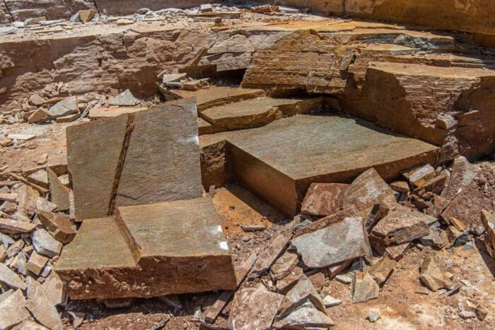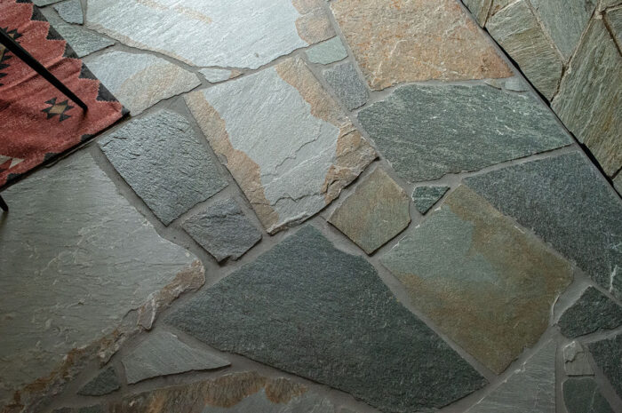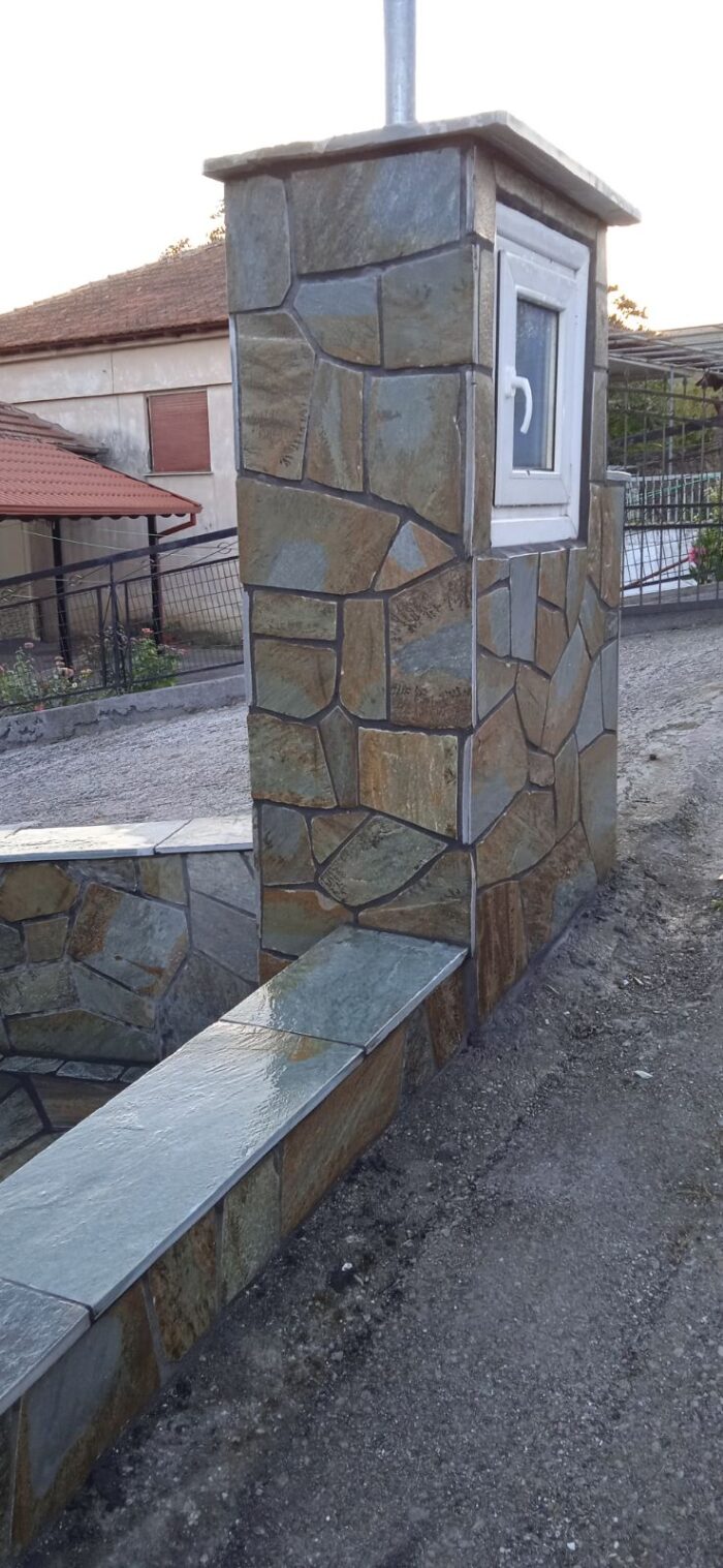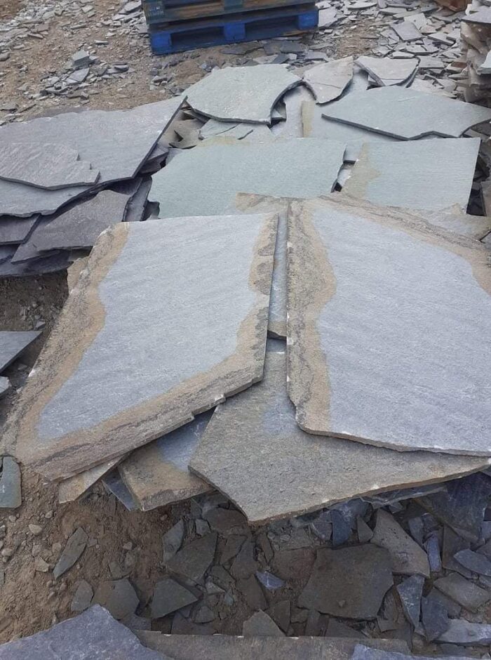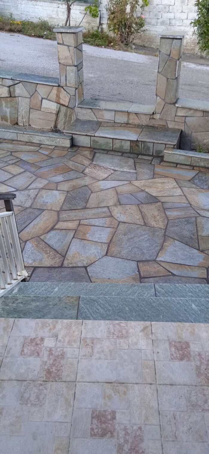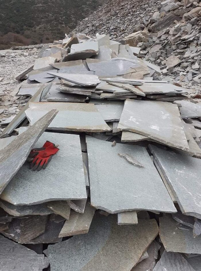 Η ακανόνιστη πλάκα Καρύστου είναι φυσικός σχιστόλιθος προερχόμενος από τα λατομεία στην περιοχή της Καρύστου.
