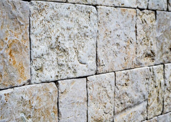 Πέτρα κομμένη σε ορθογώνιες διαστάσεις σε διάφορα μεγέθη για ελεύθερη τοποθέτηση.